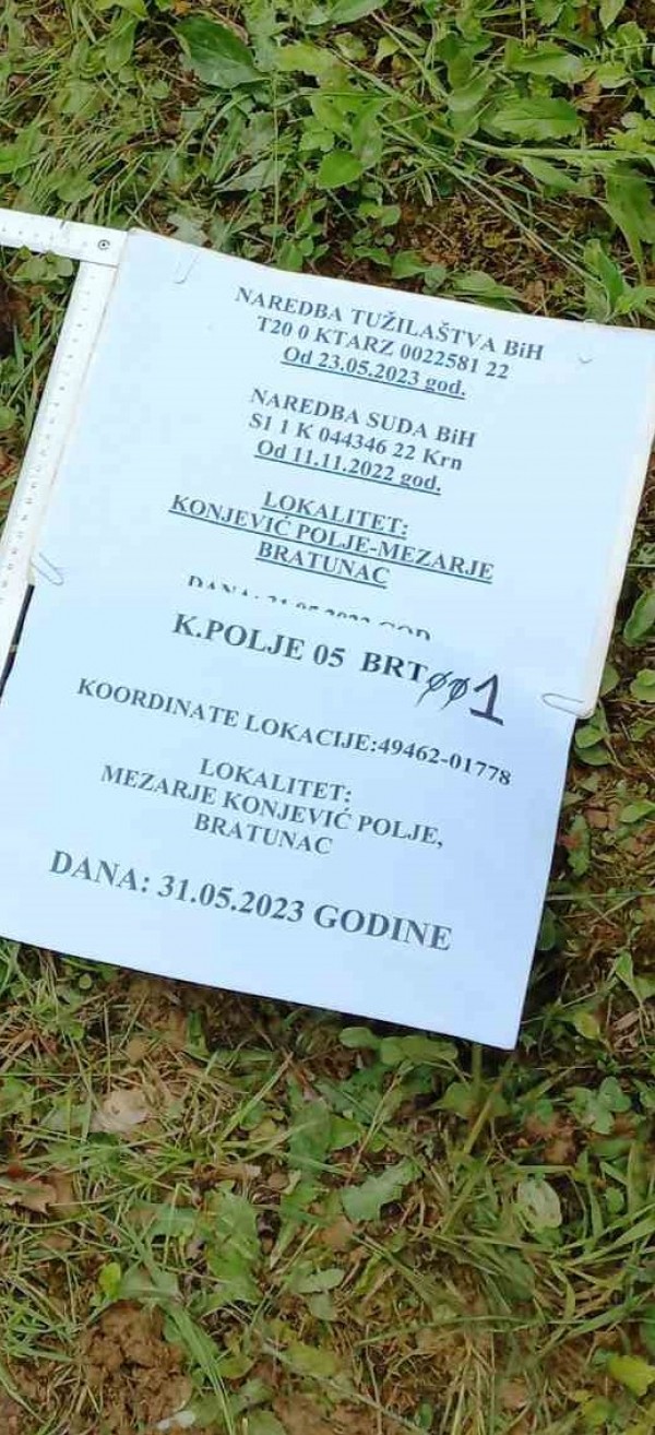 NA PODRUČJU BRATUNCA IZVRŠEN PROCES EKSHUMACIJE I POTRAGE ZA POSMRTNIM OSTACIMA NESTALIH OSOBA31.05.2023.